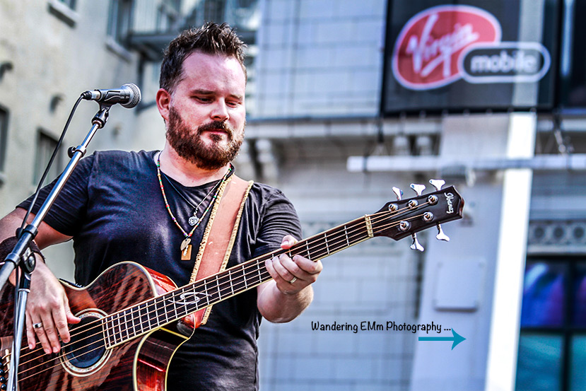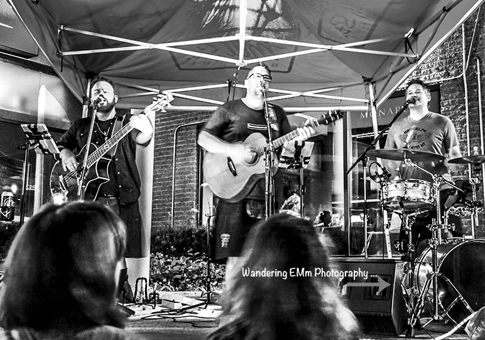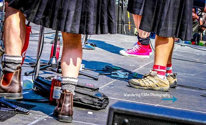 This year, I managed to catch the lads outside of the Monarch’s Pub, nestled on a stage crafted underneath a leaking water slide.(Seriously, who erects a stage underneath a leaking waterslide?) Lucky there was a roof to their stage, as the odd drip came down from the seals of the waterslide above. The water did not scare them off, and they proudly played for several hours, encouraging us to help them pay they’re parking fees, and for new pants.